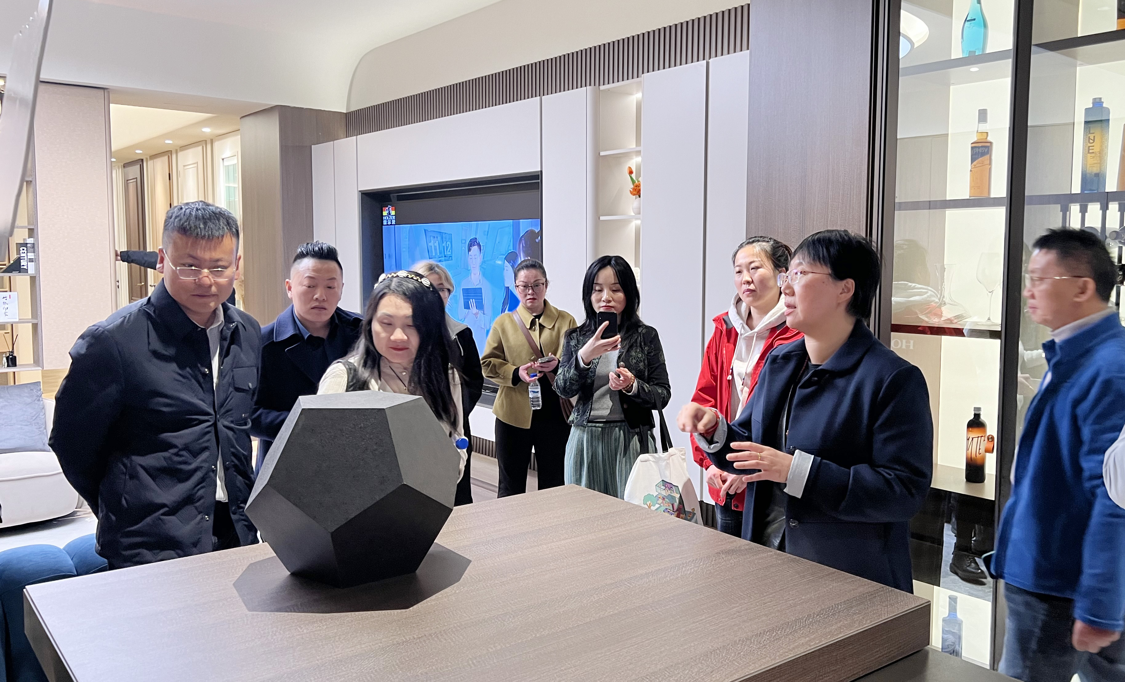 随后,代表门参观了霍尔茨3500㎡全景展厅,展厅以“空间美学+功能定制”为核心,划分为12大展区,呈现23个沉浸式家居场景,覆盖现代简约、轻奢、侘寂风等多元风格,全面展示“门墙柜一体化”解决方案。