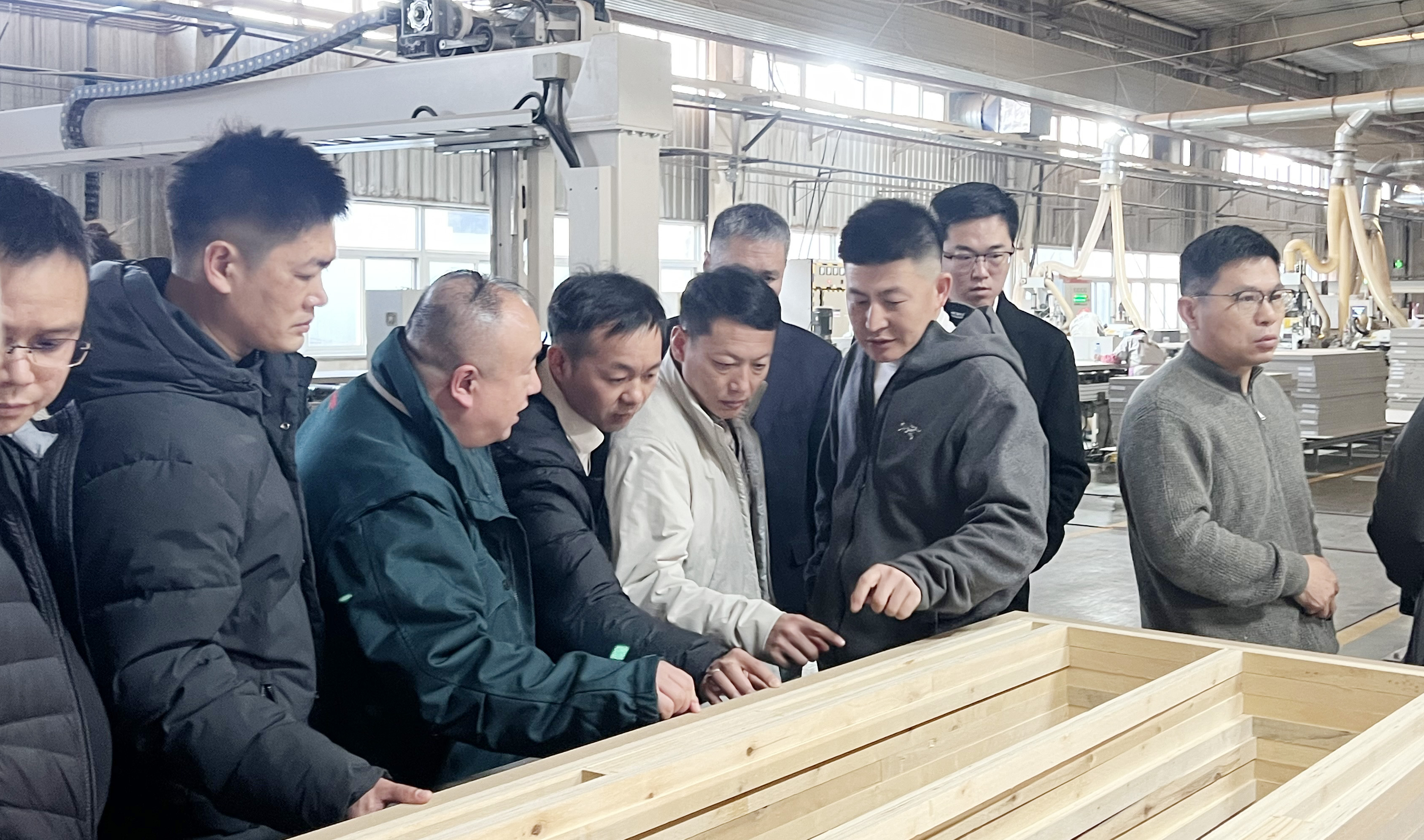 代表们在霍尔茨北京工厂车间内深入了解国内领先的T型门生产线。从板材切割到成品组装,全流程依托德国HOMAG先进设备、长白山森工集团自主研发的环保板材,以及霍尔茨CPL材料,展现了“德式工艺+国企品质”的双重优势。