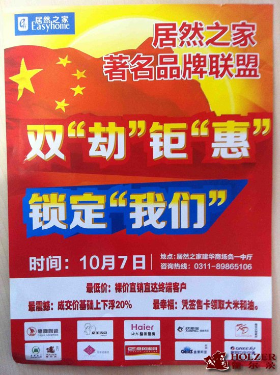 2012.10.7日,石家庄居然之家著名品牌联盟“双节钜惠,锁定我们”抢购会即将火爆举行,全市独一无二的家居建材联盟联袂盛惠即将灿烂呈现。详情请联系石家庄霍尔茨居然之家店,电话:89615639