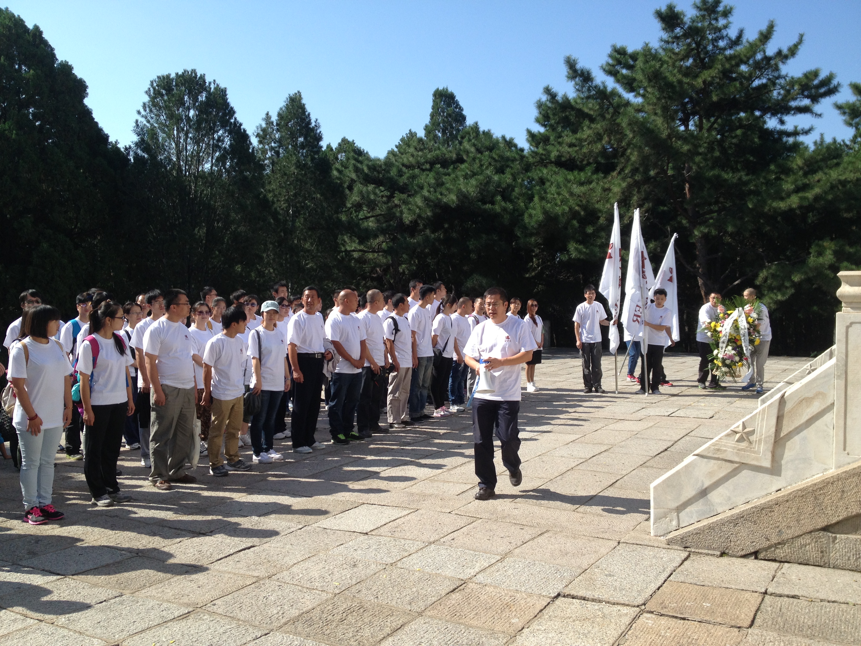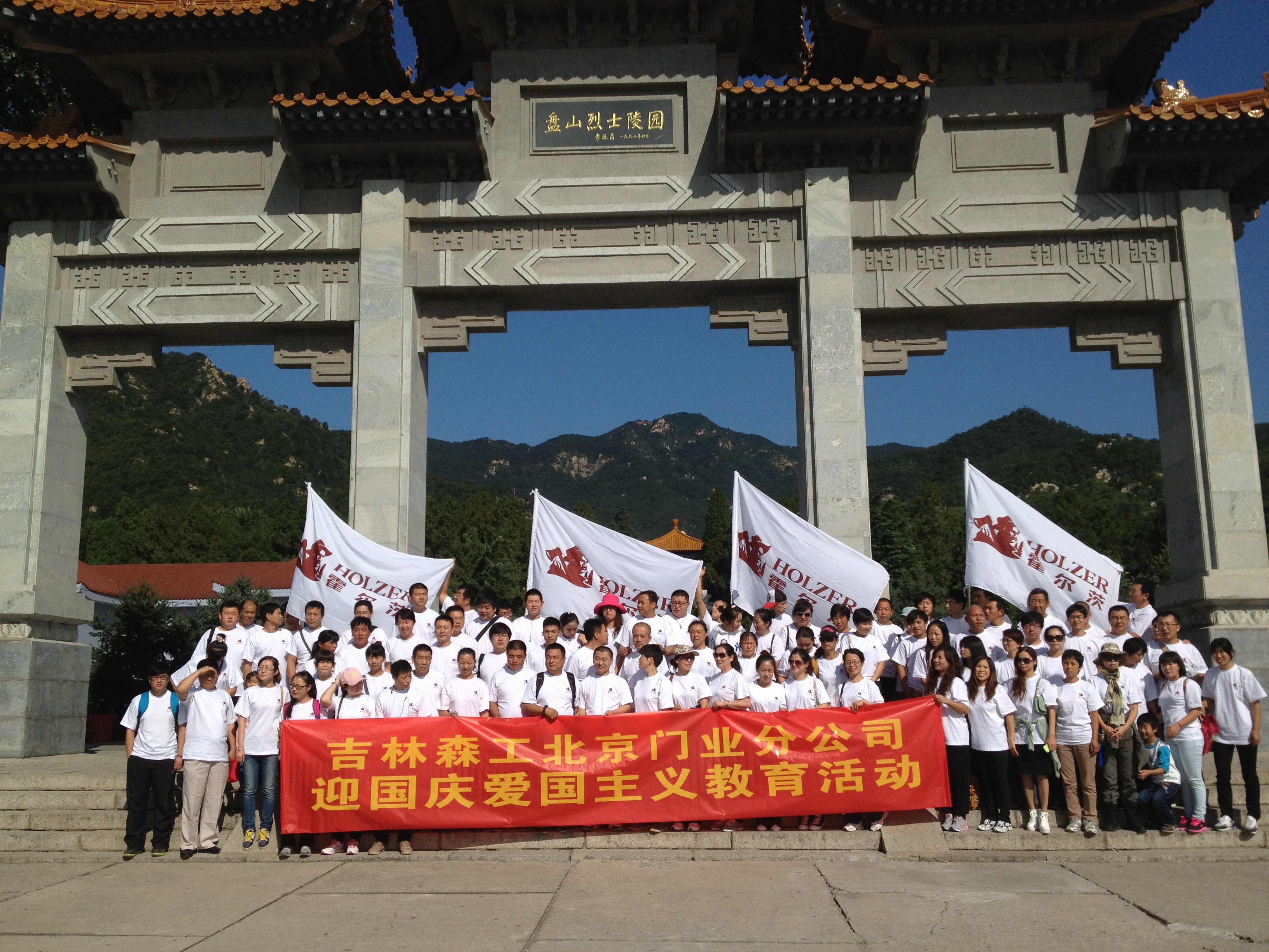国庆将至,为了纪念在抗日战争中牺牲的革命烈士,提高企业员工爱国意识,增强企业员工凝聚力,2013年9月15日吉林森工霍尔茨门业组织了公司员工去天津蓟县盘山烈士陵园进行迎国庆,爱国主义教育活动,并为烈士石刻敬献花篮、深深三鞠躬,表达对革命烈士的深切缅怀之情,随后大家缓步绕行一周,深情瞻仰烈士纪念石刻,共同向革命烈士致以深深的敬意。