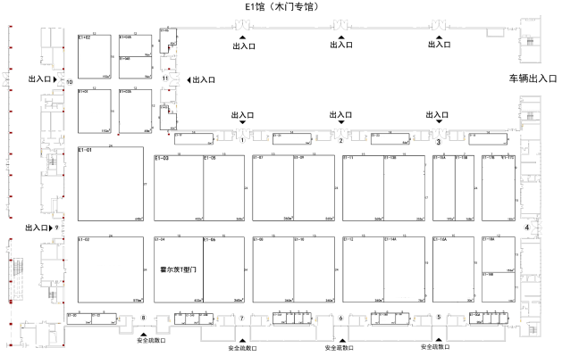 6、展位:E1-04(432平米=24米*18米)一面开口,18m面是主通道。
